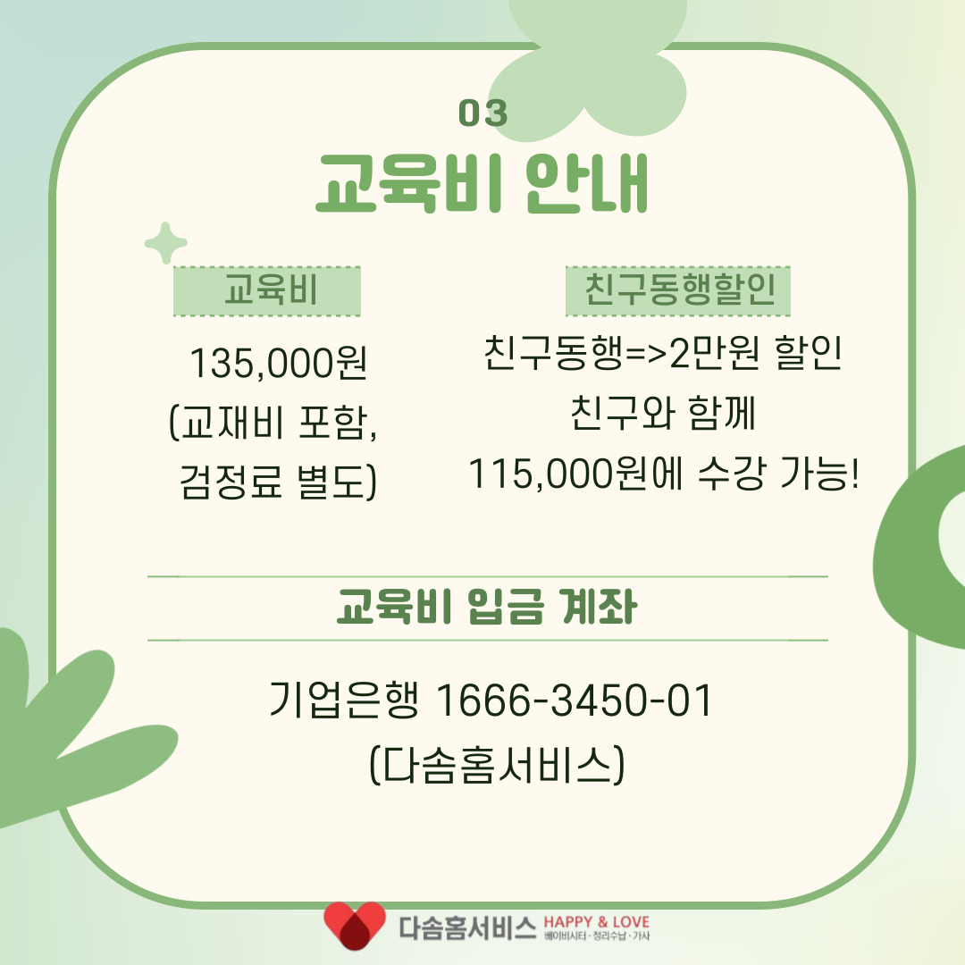 | 교육비 | 135,000원 (교재비포함,검정료미포함) | ||||