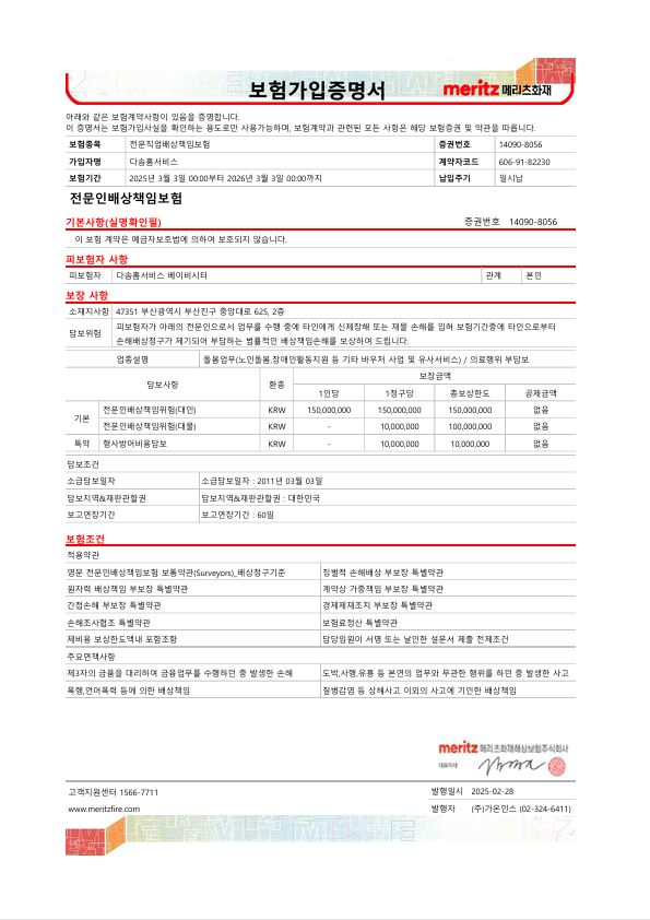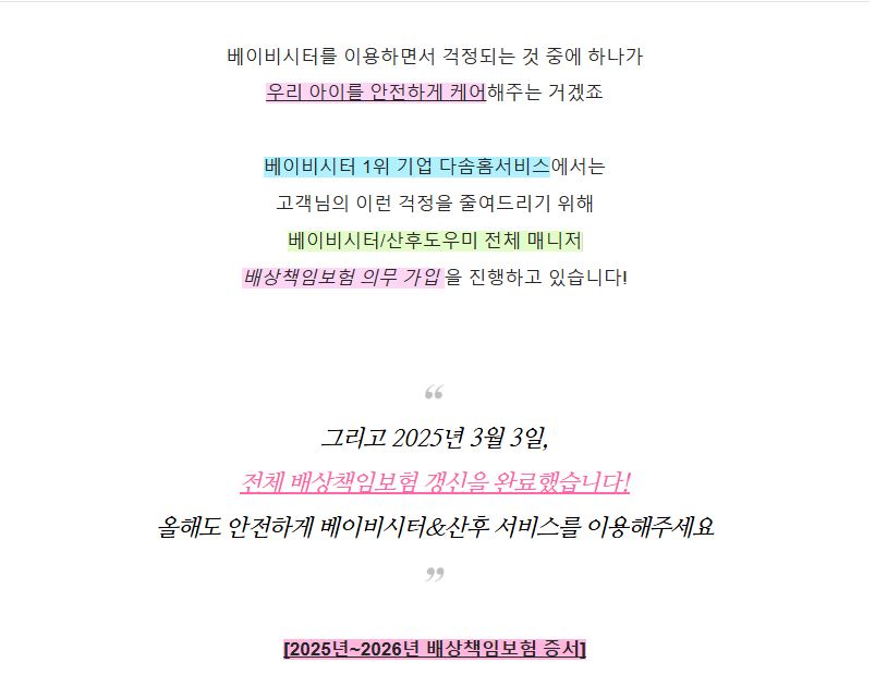 [2025년 베이비시터&산후도우미] 배상책임보험 갱신