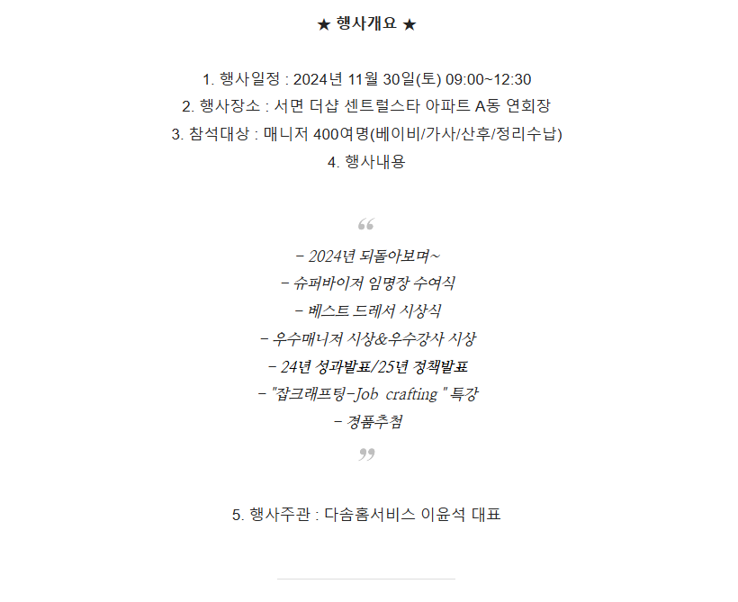 [2024년 워크샵] 다솜홈서비스 경영전략 워크샵 개최!