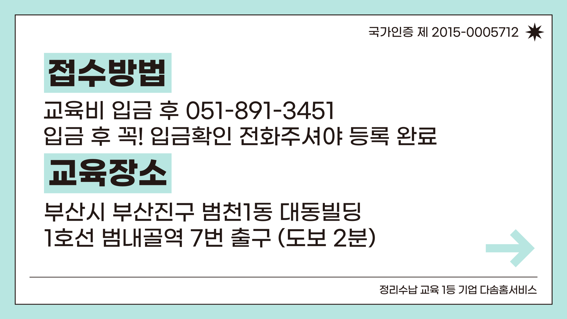 | 교육장소 | 다솜홈서비스 교육장 | ||||