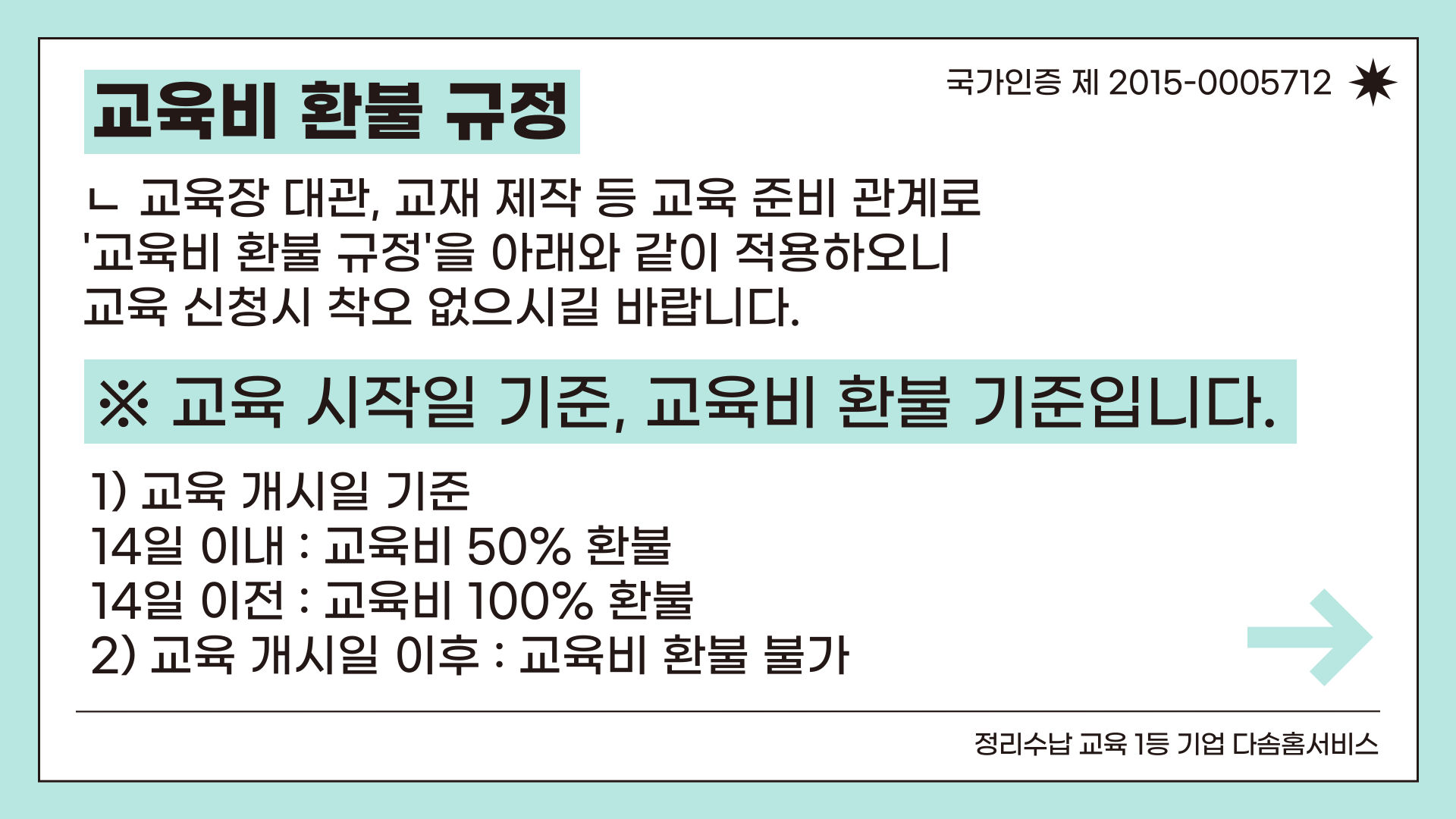 | 교육비 | 315,000원 (교재비포함) | ||||