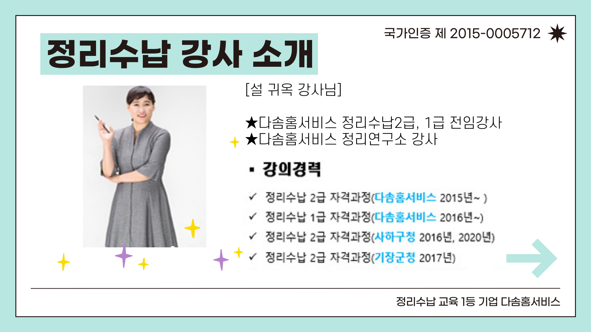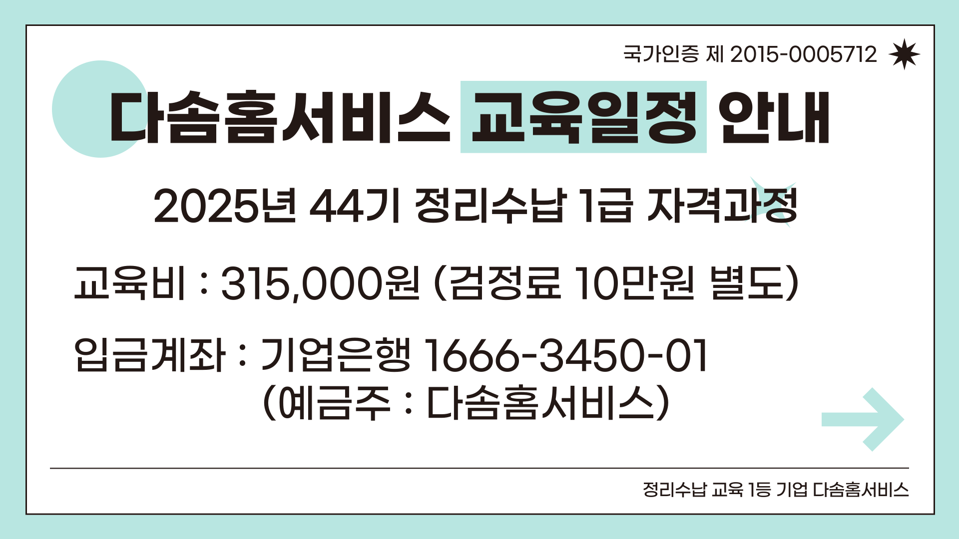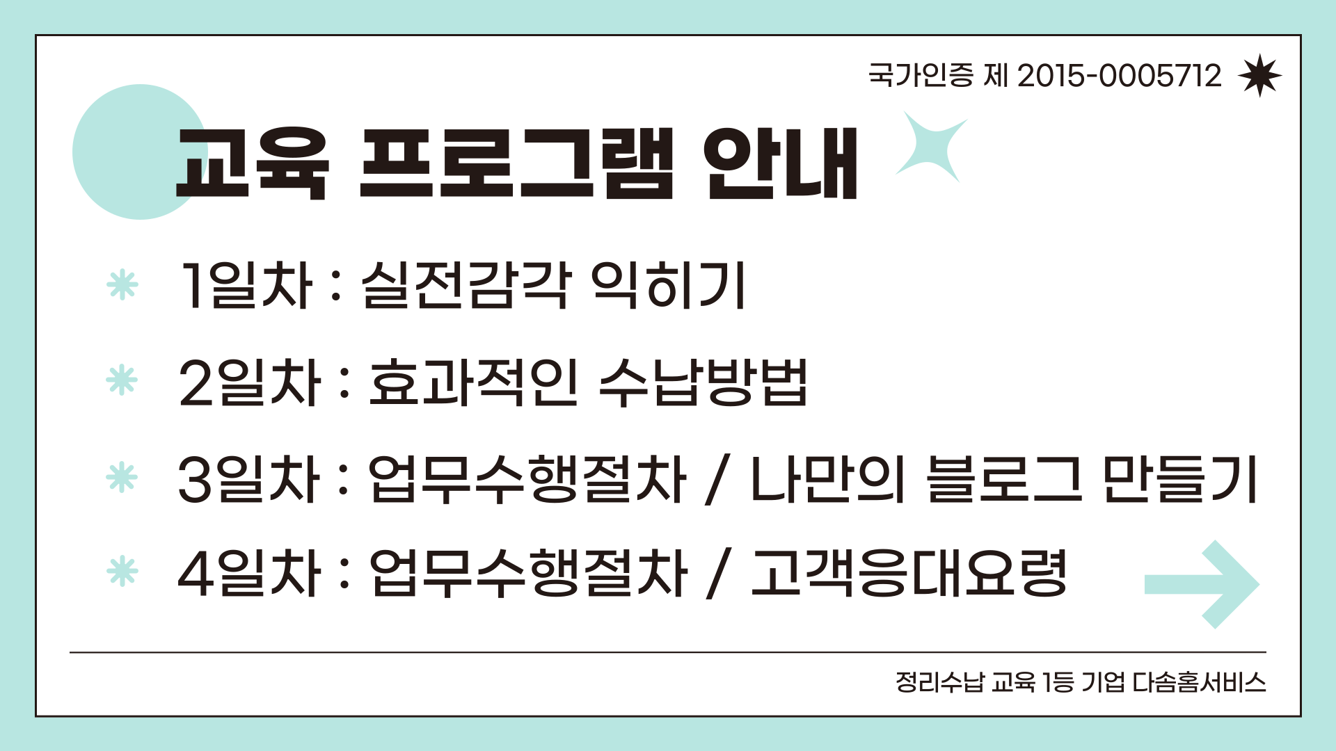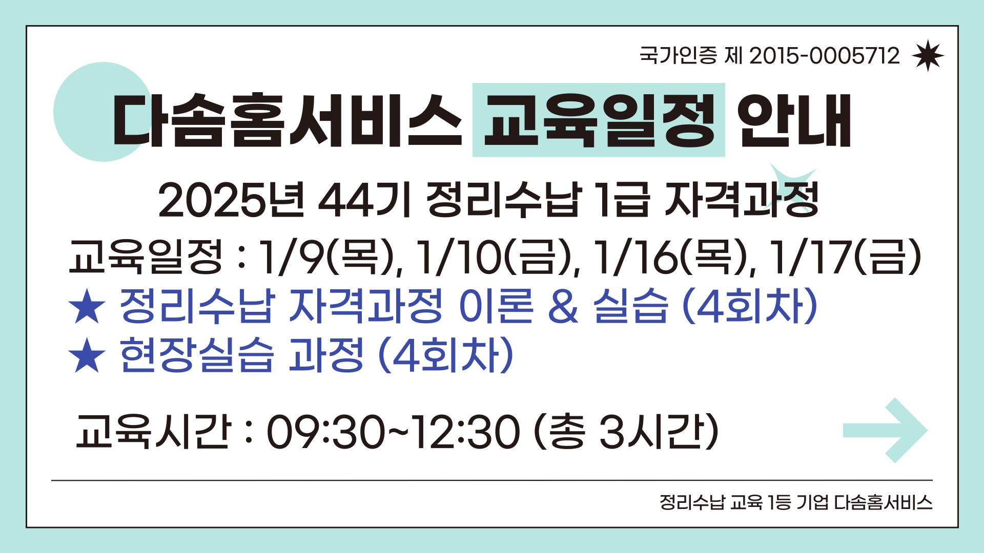오늘은 다솜홈서비스 교육센터에서 진행하는 정리수납 1급 자격과정 일정 안내를 드립니다 정리수납 과정은 2급 취득 후 정리수납 1급 취득가능하며 정리정돈, 정리수납 교육을 통해 생활의 편리함을 만들어 드리는 자격과정입니다 실생활에 적용 가능하며 타기관 2급 취득후 1급 수강 가능합니다