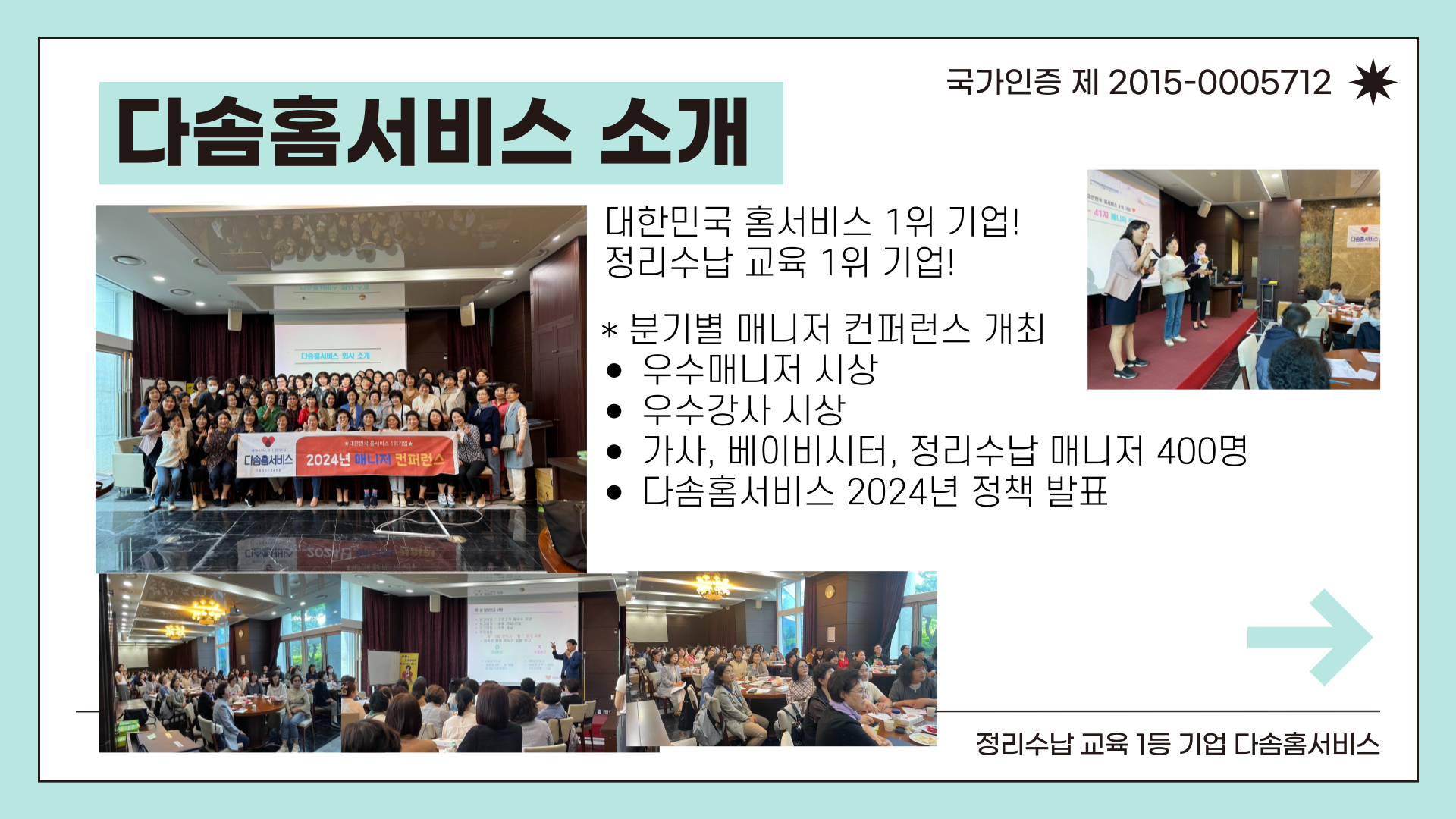 전국 200개 공기관에서 다솜홈서비스 교육우수성을 인정하였습니다!