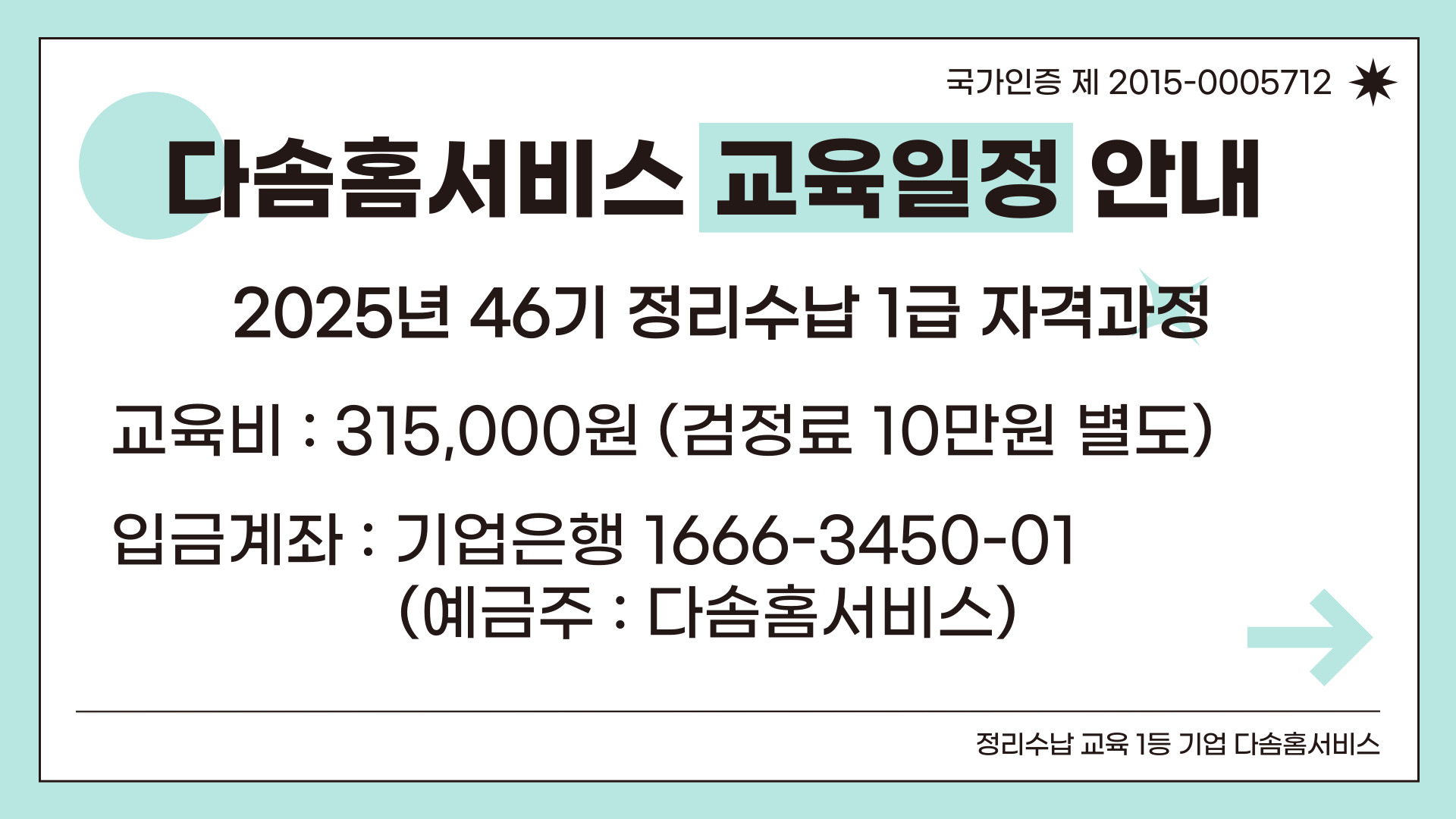 | 교육비 | 315,000원 (교재비포함) | ||||