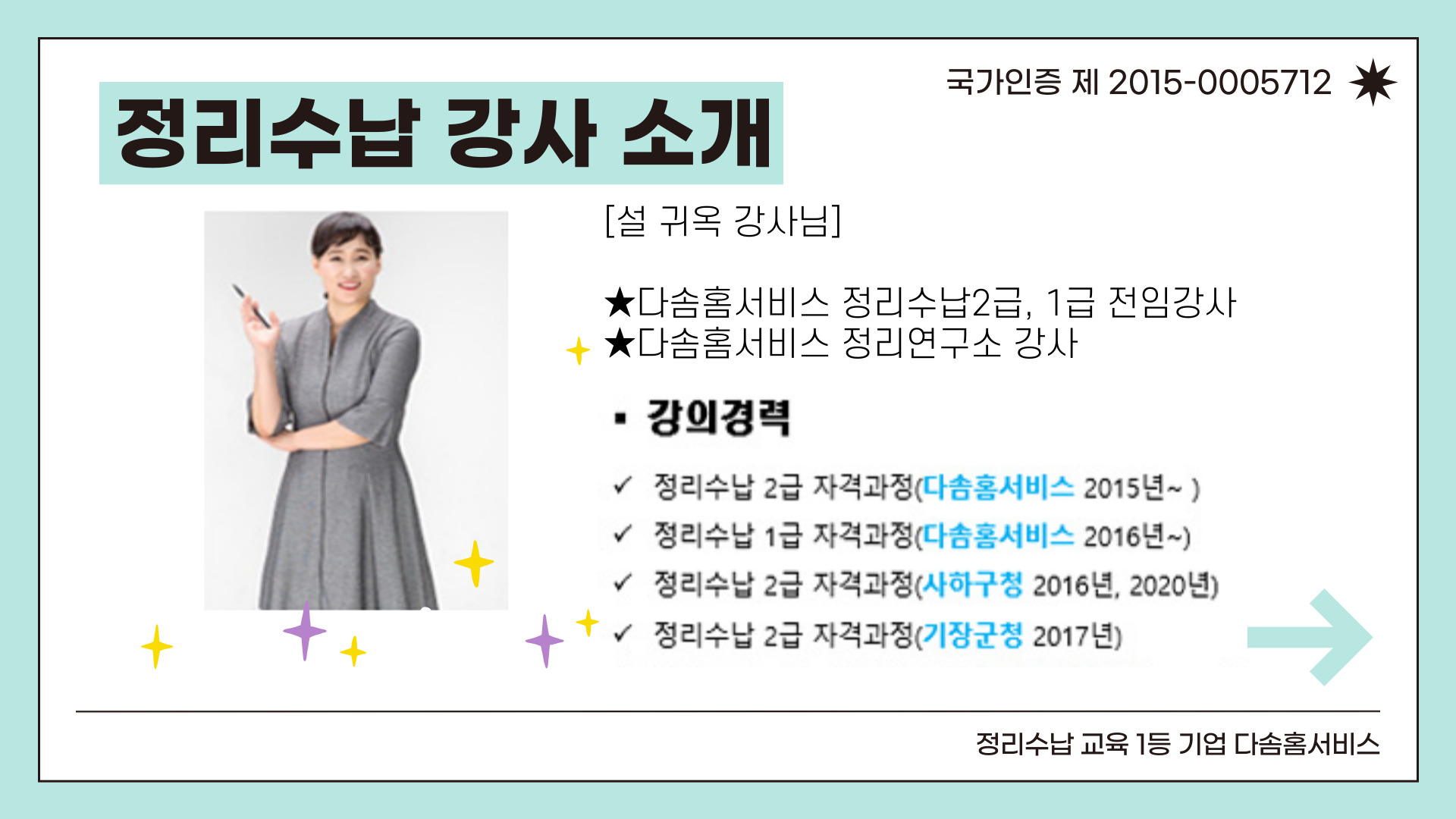 다솜홈서비스는 베이비시터, 가사전문가, 정리수납 전문가 취업을 연계한 교육프로그램을 운영하고 있습니다.