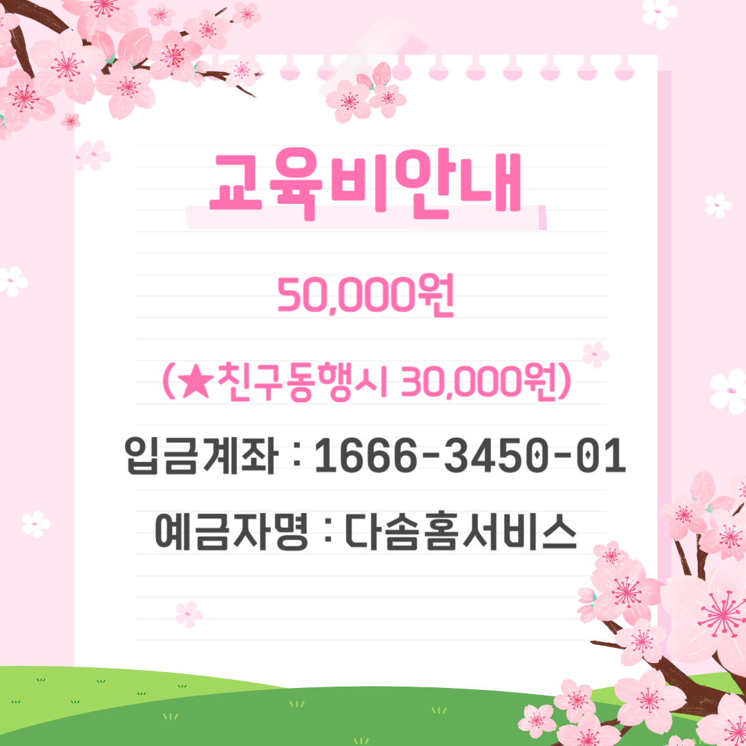 | 교육비 | 50,000원(교재비 포함) | ||||